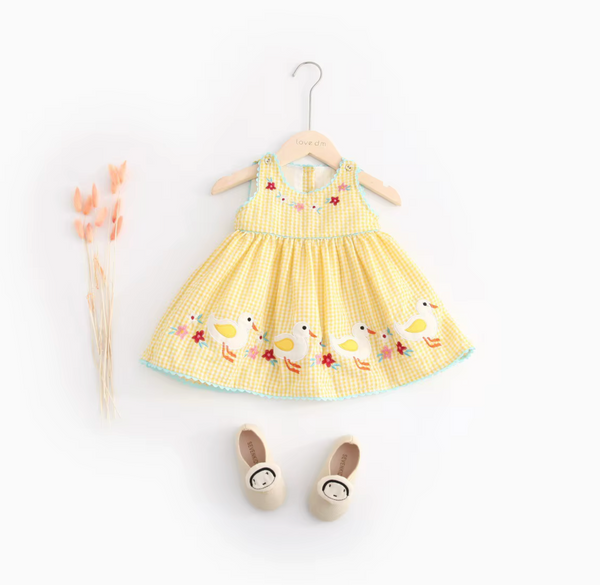 Sunshine, gingham, and little ducks—summer dressing at its sweetest.